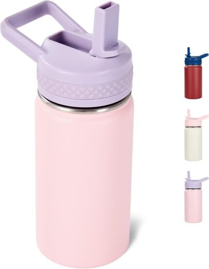 Fijinhom 12 oz Kids Water Bottle, Toddler Water Bottle with Straw, Boys&Girls Bottle for School, 304 Stainless Steel Vacuum Insulated Bottle for Kids, BPA-Free, Leak-Proof, Purple Pink