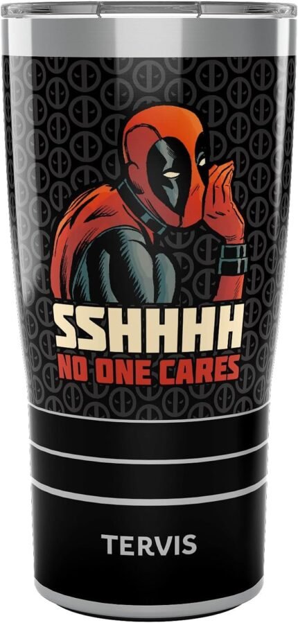 Tervis Traveler Marvel Deadpool Shhh No One Cares Triple Walled Insulated Tumbler Travel Cup Keeps Drinks Cold & Hot, 20oz, Stainless Steel