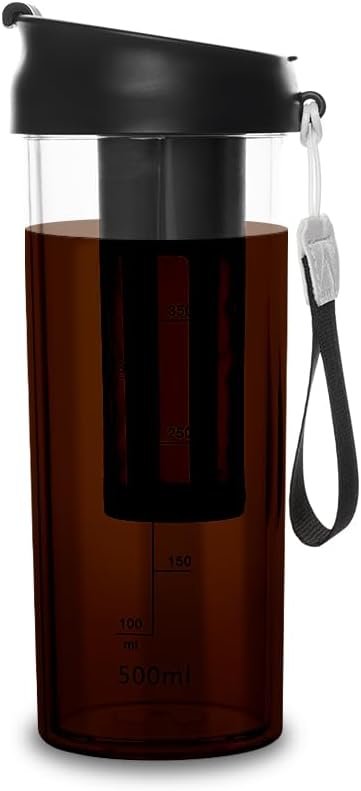 watchget Cold Brew Coffee Maker Travel Tumbler with Soft Silicone Handle Portable Iced Coffee & Tea Infuser with Airtight Lid Cold Brew Travel Cup 17oz/500ml black