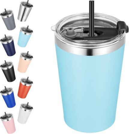 VEGOND 12oz Tumbler Stainless Steel Tumbler bulk Vacuum Insulated Double Wall Travel Tumbler with Lid and Straw Reusable Tumbler, Sky blue 1 Pack