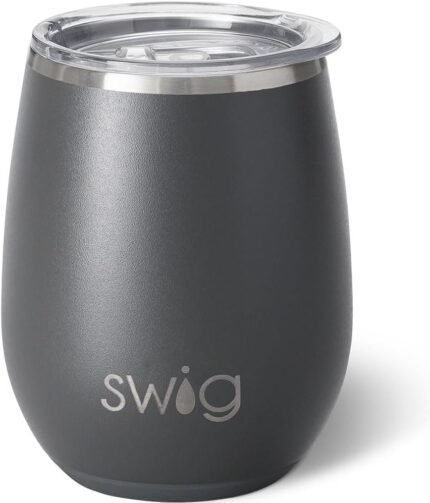 Swig Life 14oz Stemless Wine Cup, Insulated Wine Tumbler with Lid, Stainless Steel Travel Tumbler (Grey)