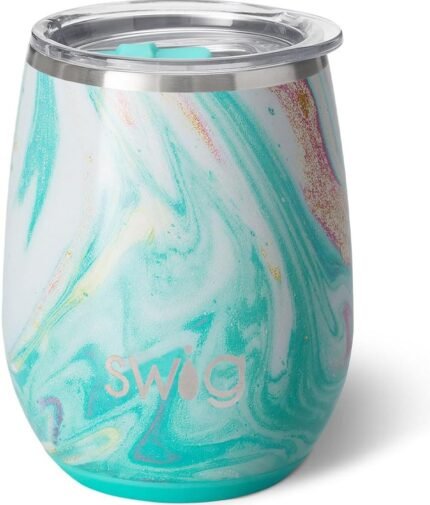 Swig Life 14oz Stemless Wine Cup, Insulated Wine Tumbler with Lid, Stainless Steel Travel Tumbler (Wanderlust)