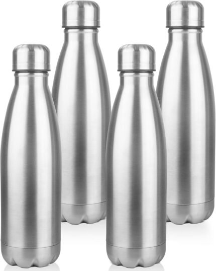 OWS 17oz Insulated Water Bottles Bulk 1/2/4 Pack, Metal Sports Water Bottles, Double Wall Vacuum BPA-Free Flask for School, Sports(silver 4pcs)