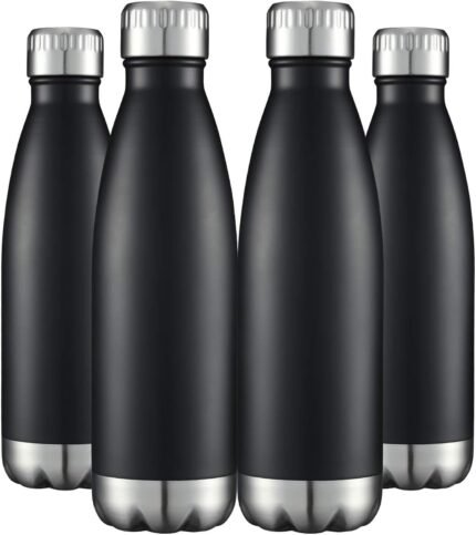 HASLE OUTFITTERS 17oz Stainless Steel Water Bottles Bulk, Vacuum Insulated Water Bottles Double Walled Reusable Metal Sports Water Bottles Keep Drinks Hot and Cold, Black, 4Packs