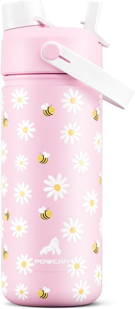 18 oz kids water bottle with straw and handle: Leak Resistant, BPA-Free, Keep Cold 24H, Quick-Flip Straw Lid, Double Wall Stainless Steel Cup for School, Family Trip, Outdoors, Gift (Pollen Party)