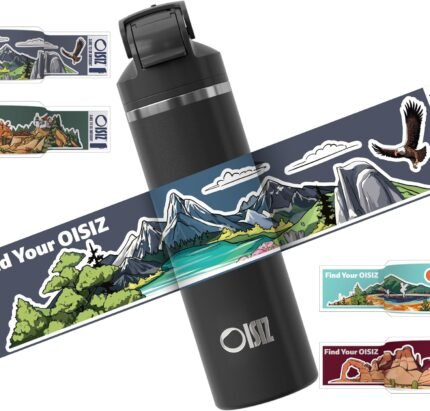 OISIZ Insulated Water Bottle 24 oz with 2 in 1 Spout and Straw Lid,Sticker-Themed Bottles,One Random Selection from 4 Themes,100% Leakproof,Keep Cold 24H,Stainless Steel Water Bottle,1 Pack