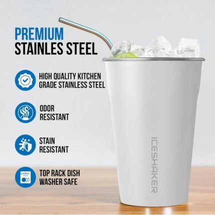 Ice Shaker 20 oz Stainless Steel Cups – Stackable & Reusable Metal Drinking Cups – BPA-Free, Dishwasher Safe, Eco-Friendly stainless steel drinking cups | 3-Pack White