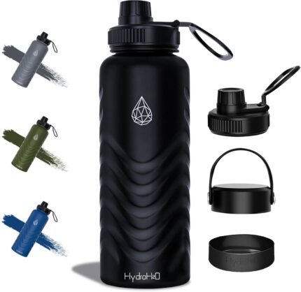24oz Stainless Steel Insulated Water Bottle, 48H Cold & 24H Hot, Leak-Proof Wide Mouth Lids (Straw & Spout), BPA-Free Bottles, Mens Water Bottle for Gym, Hiking, Travel – Black