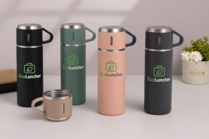 500ml Vacuum Flask Set with 2 Stainless Steel Cups – Leak-Proof Insulated Thermo Bottle, Double-Wall Vacuum, Keeps Drinks Hot or Cold for Hours, BPA-Free, Travel & Outdoor Use (black)