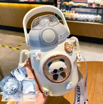 LEJN 28 oz Water Bottle Kawaii with Adjustable Shoulder Strap for Summer Cold Water Chill Portable Leakproof BPA-free Cartoon Children Cup Traveling Hiking Camping (White820ml)