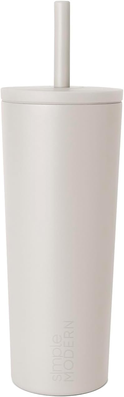 Simple Modern Insulated Tumbler with Lid and Straw | Leak-Proof Iced Coffee Cup | Ceramic-Lined Stainless Steel Travel Mug | Gifts for Women Her Him | Classic Signature | 24oz | Almond Birch