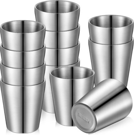 Amyhill 12 Pieces Stainless Steel Cups Double Wall Tumbler Glasses Stackable Metal Drinking Cups Insulated Drinking Glasses Reusable Camping Mugs for Home Camping RV BBQ Office Party(Silver,5.9 oz)