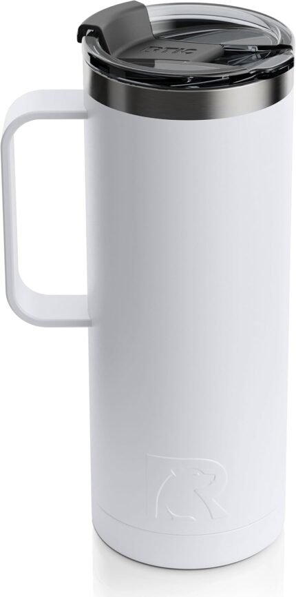 RTIC 20 oz Coffee Travel Mug with Lid and Handle, Stainless Steel Vacuum-Insulated Mugs, Leak, Spill Proof, Hot Beverage and Cold, Portable Thermal Tumbler Cup for Car, Camping, White