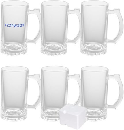 16oz Set of 6 Sublimation Blanks Transparent Glass Mug, Beer Mugs Coffee Tumblers Cups with Handle for Heat Thermal Coating Transfer