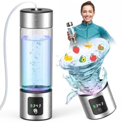 Hydrogen Water Bottle Generator, Up to 6000 PPB SPE-PEM – 460ml Borosilicate Glass, Leak-Proof, LED Display, USB Rechargeable, with Inhalation Tube – Portable Hydro Water Maker for Home, Gym & Travel
