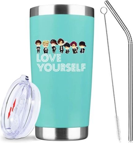 Love Yourself Inspiring Gift for Music Fans,20 Oz Insulated Stainless Steel Iced Coffee Tumbler with Lid Straw and Brush,Funny Travel Coffee Mug Cup Water Bottle,Birthday Gifts for Women Music Lover