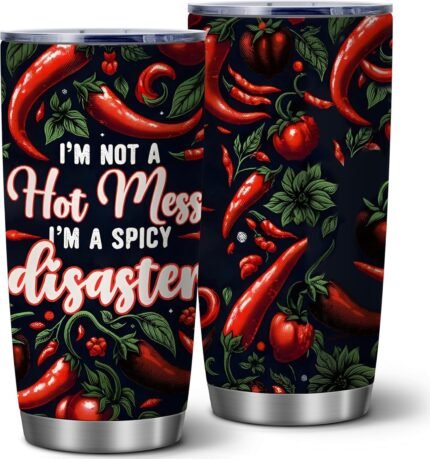 I’m Not a Hot Mess I’m a Spicy Disaster,20 Oz Hot Chili Insulated Stainless Steel Iced Coffee Tumbler with Lid,Funny Travel Coffee Mug Cup Water Bottle,Birthday Party Gift for Women Men Friend,1 Pcs