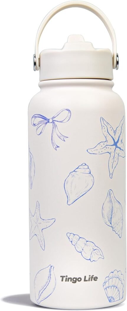 32oz Personalized Cute Ocean Bow Insulated stainless steel water bottles, Double-Wall Vacuum Insulation Design for Home,Gym, Sports, Leakproof Sports Bottle with Straw, Gifts for Girls Woman