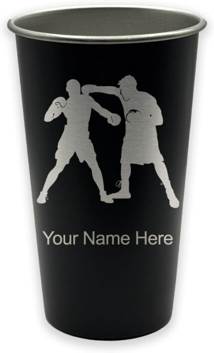 LaserGram Personalized Cup, Boxers Boxing, Stainless Steel Reusable Shatterproof Tumbler, Custom Engraved Gift (16oz / 473ml, Black)