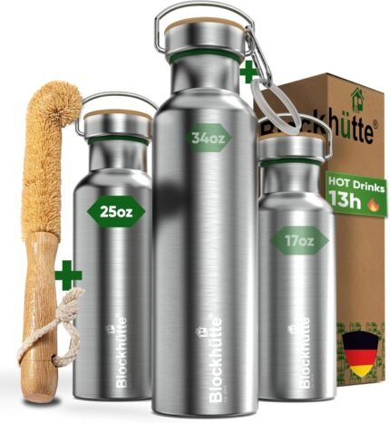 Blockhütte Vacuum Insulated Stainless Steel Water Bottle – 34 oz | Wide Mouth Insulated Metal Bottle for Cold Drinks | Perfect for Travel, School, Kids, Adults, Water Canteen, BPA-Free