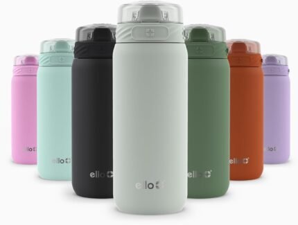 Ello Cooper 32oz Stainless Steel Water Bottle with Straw and Carry Handle, Double Walled and Vacuum Insulated Metal, Leak Proof Locking Lid with Soft Silicone Spout, Reusable, BPA Free, Yucca