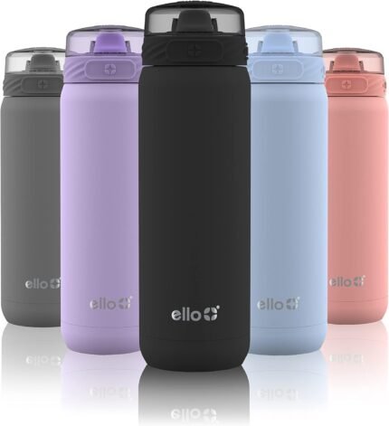 Ello Cooper 22oz Stainless Steel Water Bottle with Straw and Carry Handle, Double Walled and Vacuum Insulated Metal, Leak Proof Locking Lid with Soft Silicone Spout, Reusable, BPA Free, Lilac