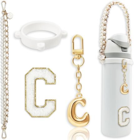 Letter Charm Accessories For Stanley Cup,Gold Initial Chain Water Bottle Name Id Charms for Tumbler,Yeti, Simple Modern Cups Handle