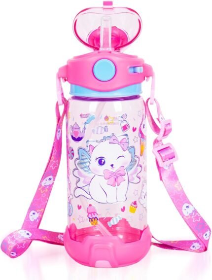 Price: (as of – Details) Kids Water Bottle with Straw/Lanyard for School Kids Girls Boys, 22oz BPA Free Child Drinking