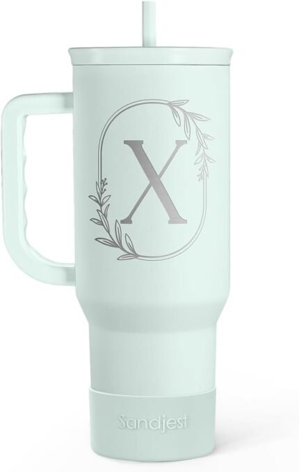 Personalized Monogrammed Tumbler with Handle 40oz, Letter X Tumblers Insulated Coffee Travel Cup, Custom Initial Gift for Women Girls Friends, Monogram Gift for Christmas Birthday Mothers Day