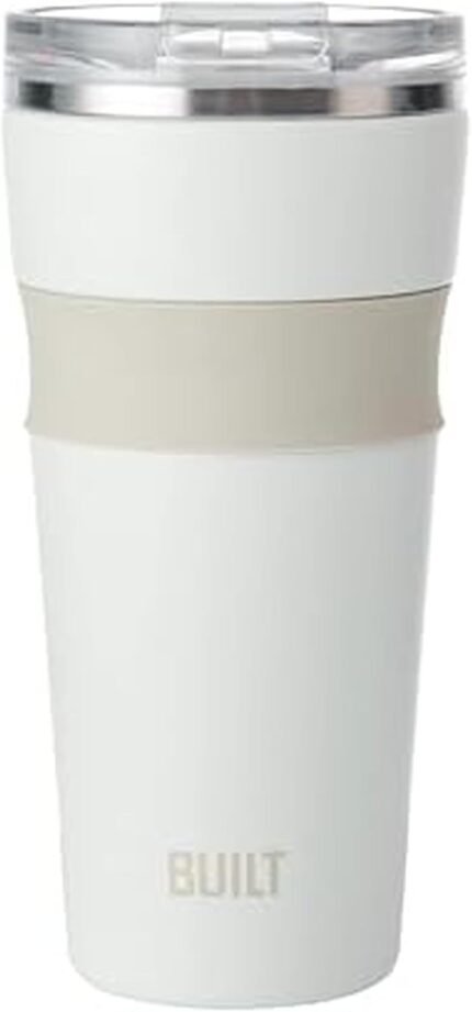 BUILT 24oz Shasta Double Wall Vacuum Insulated Stainless Steel Tumbler with Easy to Clean Flip to Open Lid, Marshmallow