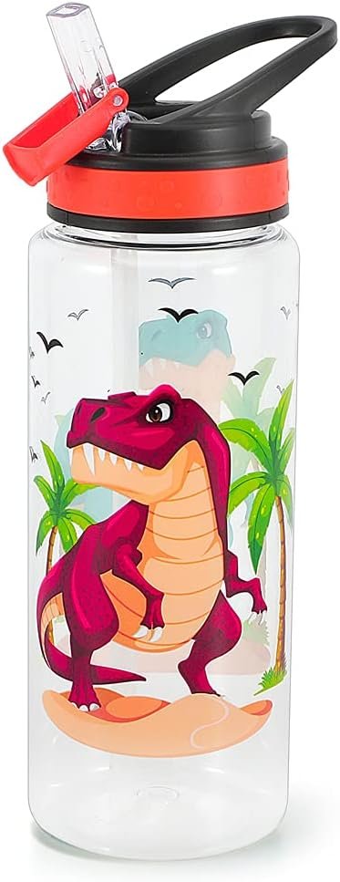 Home Tune 23oz Kids Water Bottle for School Boys, BPA FREE, Leak Proof Flip Straw, Easy Clean, Carry Handle – Dinosaur