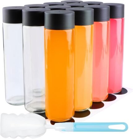 Price: (as of – Details) Product description 𝗣𝗥𝗘𝗠𝗜𝗨𝗠 𝟭𝟮-𝗣𝗔𝗖𝗞 𝗚𝗟𝗔𝗦𝗦 𝗕𝗢𝗧𝗧𝗟𝗘𝗦: 12 high-quality, thick glass milk bottles (200ml/6.8oz each) with
