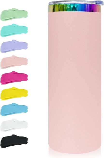 20 oz Skinny Tumblers Stainless Steel Tumbler with Lid and Straw Double Wall Vacuum Insulated Coffee Mug 20oz Powder Coated Cup for Hot and Cold Drinks(Pink,1 pack)