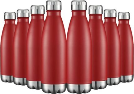HASLE OUTFITTERS 17oz Stainless Steel Water Bottles Bulk, Vacuum Insulated Water Bottles Double Walled Powder Coated Reusable Metal Sports Water Bottles Keep Drinks Hot and Cold, Red, 8Packs