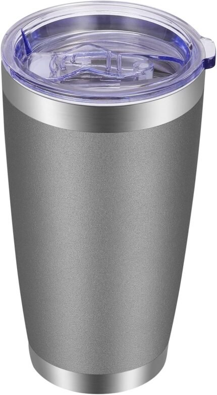 VEGOND 20oz Tumbler with Lid and Straw Stainless Steel Tumbler Cup Vacuum Insulated Double Wall Travel Coffee Mug Powder Coated Coffee Cup(Grey 1 Pack)