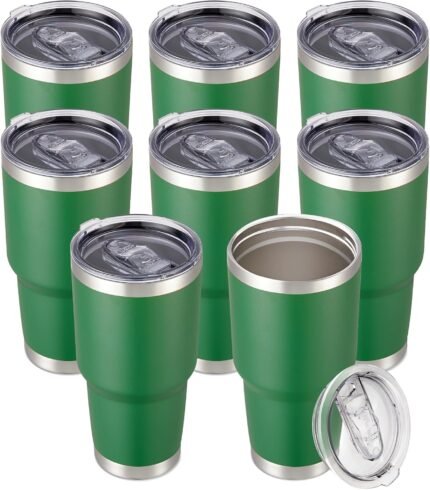 Cool Yoleb 30 oz Tumbler with Lid Stainless Steel Tumblers Bulk Vacuum Insulated Cup Reusable Powder Coated Travel Mug Double Wall Leak Proof Cups Keep Cold Drinks for 12 Hours Dark Green, Set of 8