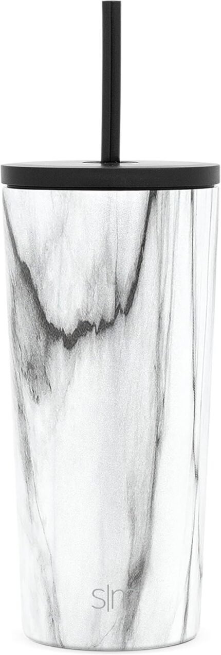 Simple Modern Insulated Tumbler with Lid and Straw | Iced Coffee Cup Reusable Stainless Steel Water Bottle Travel Mug | Gifts for Women Men Her Him | Classic Collection | 20oz | Carrara Marble