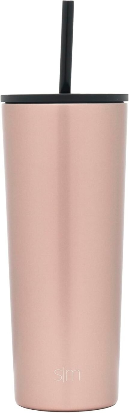 Simple Modern Insulated Tumbler with Lid and Straw | Iced Coffee Cup Reusable Stainless Steel Water Bottle Travel Mug | Gifts for Women Men Her Him | Classic Collection | 24oz | Rose Gold