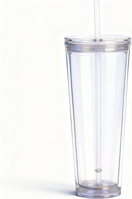 Alohastarttg 24oz Tumbler with Lid and Straw, Leak Proof and Double Wall Insulated Reusable Plastic Cups,Travel Reusable Iced Coffee Cup (1, Transparent)