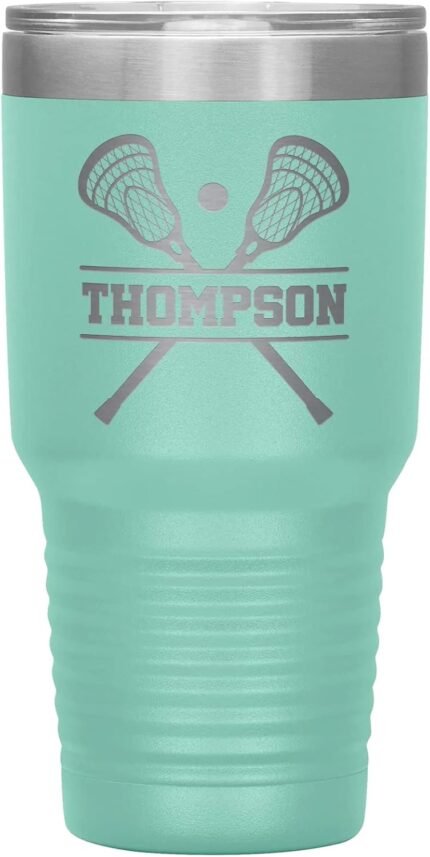 Personalized Lacrosse Tumbler With Name – 30oz Insulated Engraved Stainless Steel Travel Mug – Teal Gift