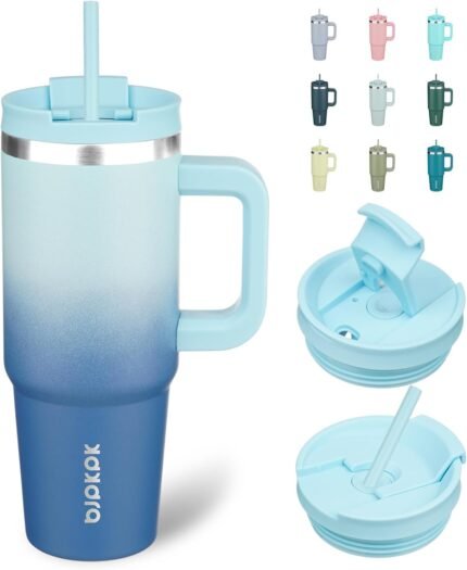Price: (as of – Details) BJPKPK 30oz/40oz Stainless Steel Double Wall Vacuum Insulated Travel Tumbler With Handle And Straw Insulated
