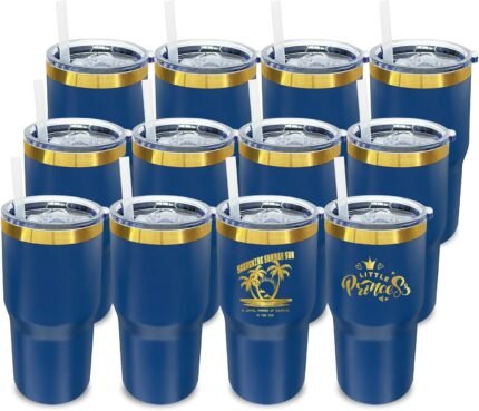 20 oz Tumbler Bulk 12 Pack Stainless Steel Tumblers with Lids and Straws, Double Wall Vacuum Insulated Travel Coffee Mug for Laser Engrave, Powder Coated Cups for Hot and Cold Drink (Navy,12 pack)