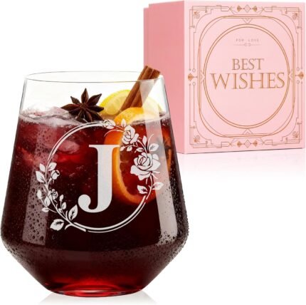 SIPBYSOP Personalized Stemless Wine Glass – Initial Engraved Customized Gift Monogrammed A-Z,19 OZ, Christmas Anniversary Birthday Gifts for Women