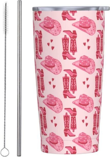 Cute Pink Cowgirl Tumbler,Cowgirl 20oz Stainless Steel Insulated Travel Tumblers,Travel Coffee Mug with Lid and Straw Water Bottle Drink Tumbler Cups Gifts for Women Men Lovers
