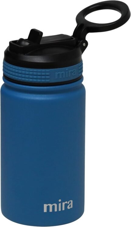 MIRA 12 oz Water Bottle with Spout Lid – Small Portable Vacuum Insulated Stainless Steel Thermo Flask for Travel, Hiking, Gym – Denim