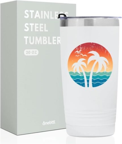 Price: (as of – Details) Onebttl Beach Tumbler for Palm Tree Lover – 20oz Stainless Steel Tumbler with Lid and