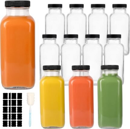 Price: (as of – Details) Product description GUANENA 12oz Square Glass Drinking Bottles – 12 Pack Different Size for Your