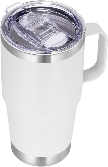 VEGOND 20 oz Tumbler with Handle Lid and Straw, Stainless Steel Insulated Travel Coffee Mug Spill Proof Double Wall Metal Tumbler Cup Keeps Drink Hot and Cold, White 1 Pack