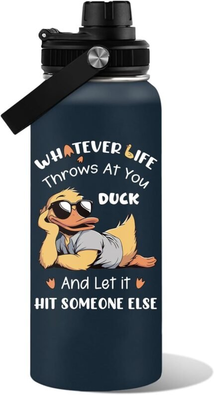Duck Water Bottle 32oz, Funy Duck Stainless Steel Tumbler With Lid, Double Wall Vacuum Insulated Ducks Coffee Travel Cup, Christmas Birthday Gift for Ducks Lover