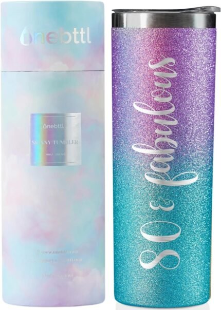 Price: (as of – Details) Onebttl 80th Birthday Gifts for Women, 20oz Insulated Stainless Steel Tumbler with Lid and Straw